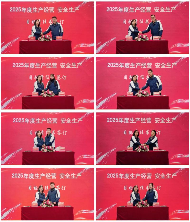 表彰之后,公司黨支部書記、董事長、總經(jīng)理杜慶華同志分別與公司各部門負(fù)責(zé)人簽訂2025年度生產(chǎn)經(jīng)營和安全生產(chǎn)工作目標(biāo)責(zé)任書。