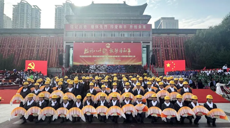 9月5日上午,勝利八十載 放歌頌和平——青海省紀念中國人民抗日戰(zhàn)爭暨世界反法西斯戰(zhàn)爭勝利八十周年群眾歌詠大會在新寧廣場隆重舉行。由省物產(chǎn)集團80名職工組成的合唱方陣代表全省企業(yè)參加演出活動。集團黨委書記、董事長劉玲,集團黨委專職副書記、工會主席魏廷強參加紀念大會。