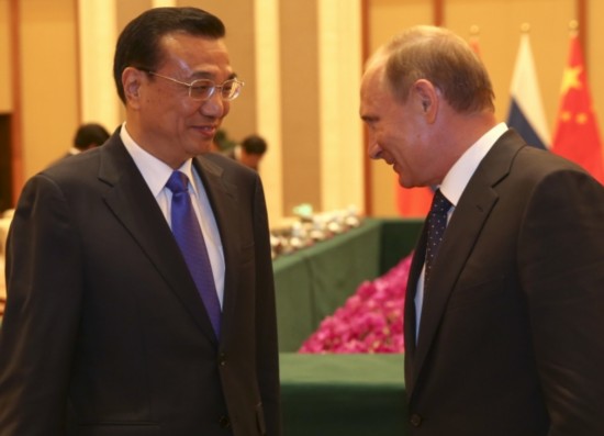 李克強總理會見俄羅斯總統(tǒng)普京時說:"中俄兩國是戰(zhàn)略伙伴,互為最大鄰國。共同維護二戰(zhàn)勝利成果,反對歪曲篡改二戰(zhàn)歷史,這是我們的共識,也是對世界正義的伸張。"