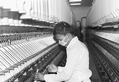 天利紡紗(毛里求斯)有限公司紡紗廠的外籍員工在工作。 本報(bào)記者 倪 濤攝