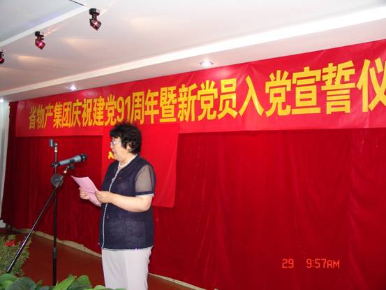 我宣誓:"我志愿加入中國(guó)共產(chǎn)黨,擁護(hù)黨的綱領(lǐng),遵守黨的章程,履行黨員義務(wù),執(zhí)行黨的決定,嚴(yán)守黨的紀(jì)律,保守黨的秘密,對(duì)黨忠誠(chéng),積極工作,為共產(chǎn)主義奮斗終身,隨時(shí)準(zhǔn)備為黨和人民犧牲一切,永不叛黨"。6月29日上午10∶00時(shí),17名新加入黨組織的中國(guó)共產(chǎn)黨預(yù)備黨員、所屬各黨組織書(shū)記、老黨員代表等30余人的莊嚴(yán)宣誓,標(biāo)志著青海物產(chǎn)系統(tǒng)慶祝建黨91周年系列活動(dòng)正式展開(kāi)。